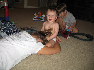 So I get the boys down for their afternoon naps and I hurry to finally take a shower for the day ....when all of a sudden I am washing my hair and I hear Leyton saying "mom, I want my milk"...so I kindly tell him "wait just a bit, mom has to finish showering", by the time I get out of the shower this is what I step out to....guess he wasn't ready for his milk after all!